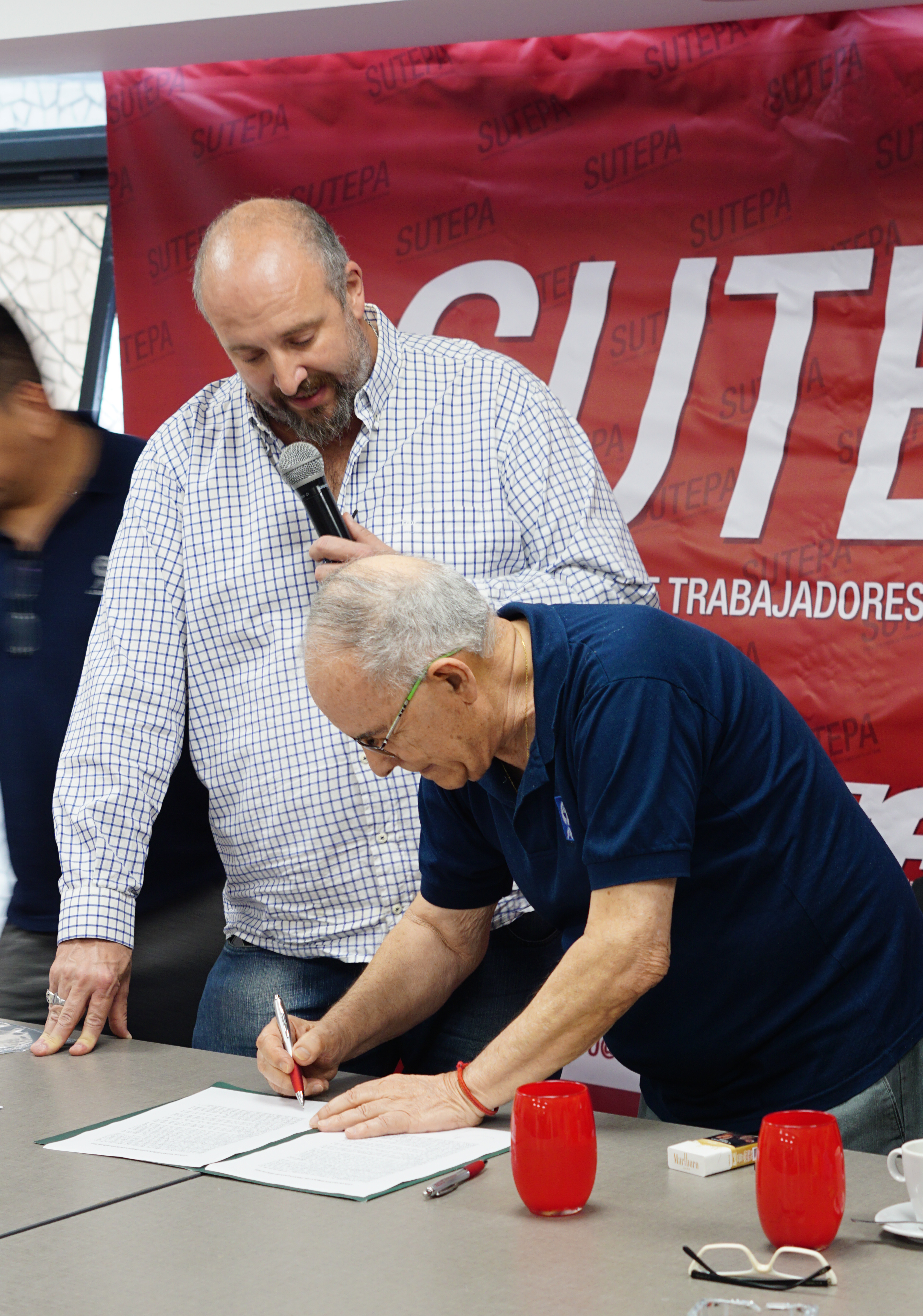La firma del acuerdo se desarrolló en nuestra sede gremial con la presencia de Carlos Raúl Villagra secretario general de asociación de Farmacias, Hernán Corredoira secretario general, Luciana Zazzetta, secretaria de Acción Social y Ricardo García, secretario de Interior de SUTEPA.